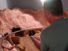 Here, Mark is making some cuts to the sub road bed, to make room for the foam platform.