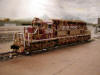 Marty Young This is a SD40-2, using microscale decals The engine is a Kato engine, pretty much a UP prototype. He removed the ratchet brake lever and replaced it with a brake wheel. He added sunshades, mirrors, and a firecracker antenna. He painted it tan and added a ton of decals, nearly 20 hours worth of decaling.