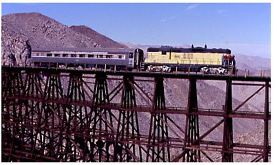 Now let's get to my history with this historic rail line. It started with me buying the book "San Diego & Arizona - the Impossible Railroad by Robert M. Hanft which is where I attained some of the material in the part story above. I saw the great pictures and read the text which made me want to ride this railroad someday. My riding started on the San Diego Railroad Museum at Campo on their train ride east to Miller Creek in 1983. Next was the trip from Campo to San Diego via Tecate and Tijuana on March 30th,1984. It got sober on January 18th 1995 and to prove to myself and to my parents that I could ride a train in Mexico sober I rode a San Ysidro to Tecate Excursion Train on February 24th,1996. A Trip later that year to Campo provided a steam train ride to Miller Creek behind ex Southern Pacific 4-6-0 2353 on September 21st,1996. My next trip on the railroad on April 26th,1997 was on the Jacumba and Beyond Excursion which took us east of Miller Creek, over the Upper Campo Creek Viaduct to a point near Dubbers near the entrence to the Carrizo Gorge. All of these trips are on my train riding story page on my web site. Just click on home at the bottom to access those stories. I had ridden this far the San Diego & Arizona Railroad but I knew it would take something truly special to happen so that I could ride into the Carrizo Gorge. The name of that special thing was the Carrizo Gorge Railroad.