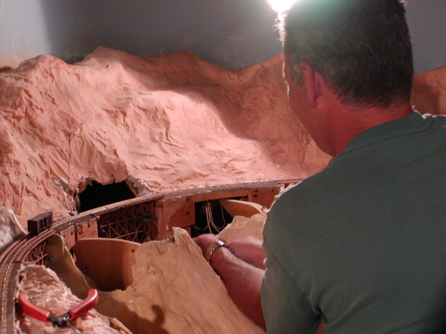 Here, Mark is making some cuts to the sub road bed, to make room for the foam platform.